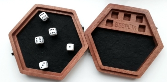 These beautiful, hardwood dice boxes are customised with a name, design or logo of your choosing on the top lid and are finished with a selection of felt and dice colours.